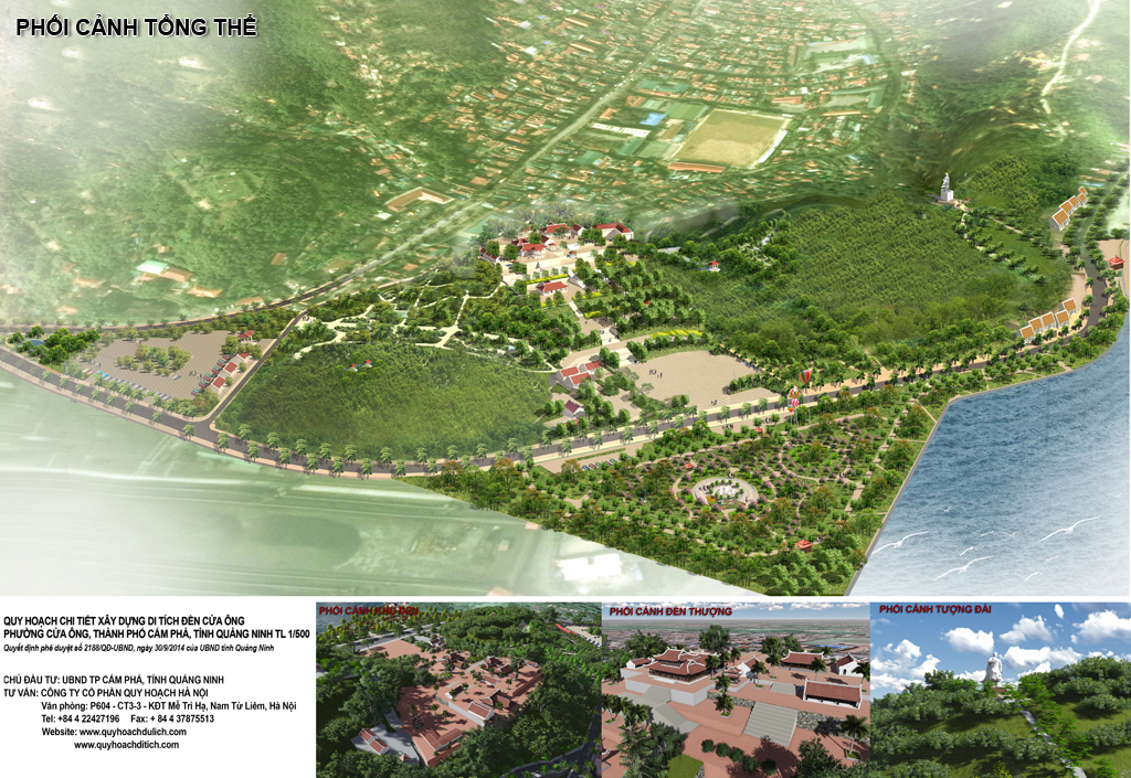 Với định hướng phát triển Di tích Đền Cửa Ông là điểm du lịch lịch sử - văn hoá – tâm linh, một trong những điểm thăm quan, du lịch chính của tỉnh Quảng Ninh có hạ tầng kỹ thuật đồng bộ, cảnh quan thiên nhiên đẹp và bền vững. Công ty Cổ phần Quy hoạch Hà Nội đề xuất phương án quy hoạch gồm: Phục dựng lại đềnTrung, tại vị trí chân đềnThượng, hướng nhìn ra vịnh Bái Tử Long. Hình thành cụm di tích với 3 ngôi đền: Đền Hạ, đền Trung, đền Thượng, theo độ cao tăng dần từ Đông sang Tây liên kết bằng các tuyến đường đi bộ, thiết kết thành 3 cấp bậc thang. Di chuyển tượng đài Đức Ông lên dải núi yên ngựa, cách cụm di tích trung tâm khoảng 250m. Ngoài ra để tránh ảnh hưởng đến cụm di tích trung tâm trong phương án quy hoạch sẽ điều chỉnh tuyến đường ven biển chạy ra phía sau đồi đài phát thanh, tạo quần thể di tích khép kín thống nhất. Toàn bộ khu di tích được bao quanh bởi các khu công viên cây xanh, rừng sinh thái; tạo khu di tích gắn kết hài hòa với thiên nhiên, làm toát lên vẻ đẹp, sự linh thiêng nơi đây.
