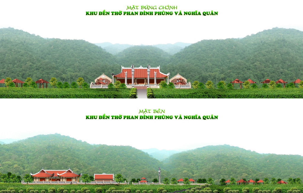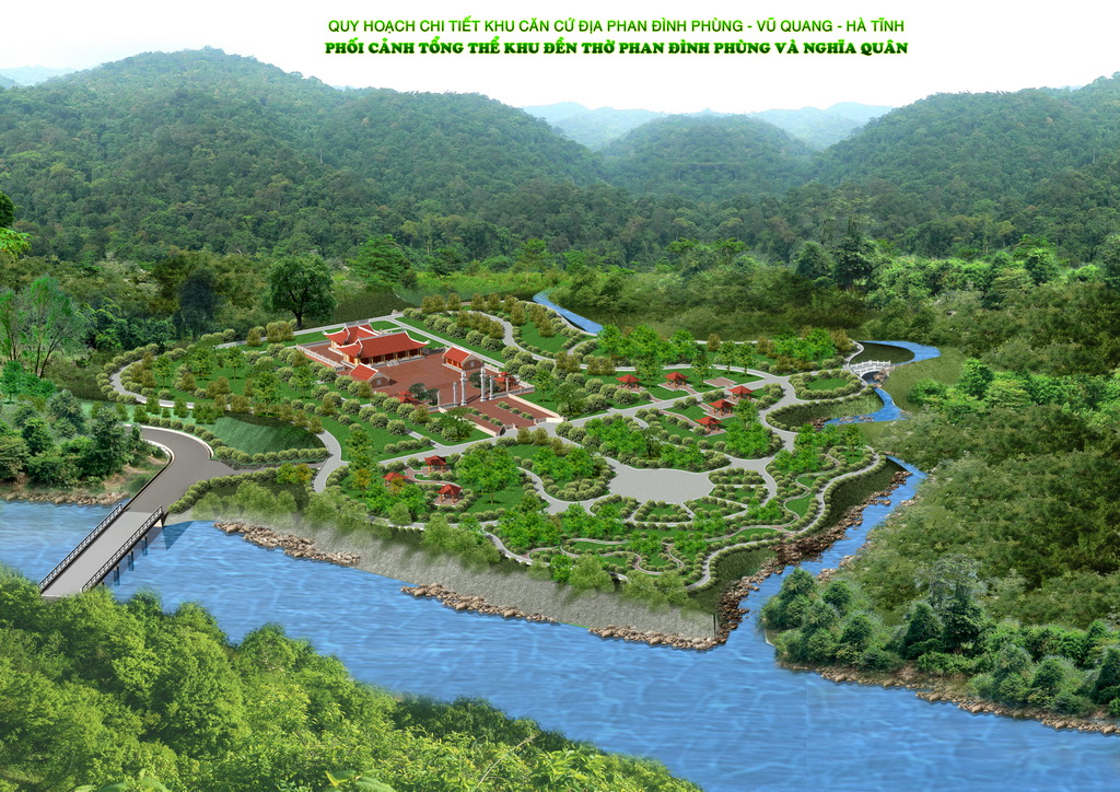 + Khu đền thờ Phan Đình Phùng và nghĩa quân: Khu đền thờ Phan Đình Phùng và nghĩa quân, Khu vườn cây ăn trái, Khu quảng trường- vườn cây lưu niệm, Khu dịch vụ- nghỉ chân, Khu vườn dạo ngắm cảnh, Khu cổng thành sân đặt bia dẫn tích