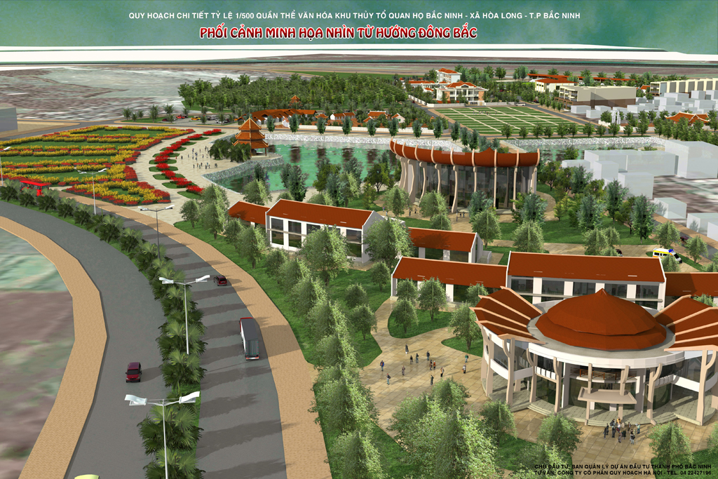 HNPL.,JSC thiết kế với định hướng mở rộng không gian và diện tích nhằm đầu tư xây dựng phát triển các hạng mục công trình của Quần thể văn hóa khu Thủy tổ Quan họ Bắc Ninh, nâng tầm cả về quy mô hoạt động và tầm vóc, vai trò của quần thể di tích lịch sử quốc gia, nhằm hình thành khu bảo tồn, không gian trưng bày văn hóa lịch sử quan họ, thể hiện quá trình hình thành, phát triển của dân ca và văn hóa quan họ. Trong đó, lấy khu đón tiếp và dịch vụ làm hạt nhân chính, bố cục với 3 không gian chính: