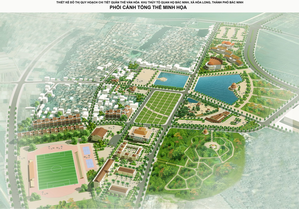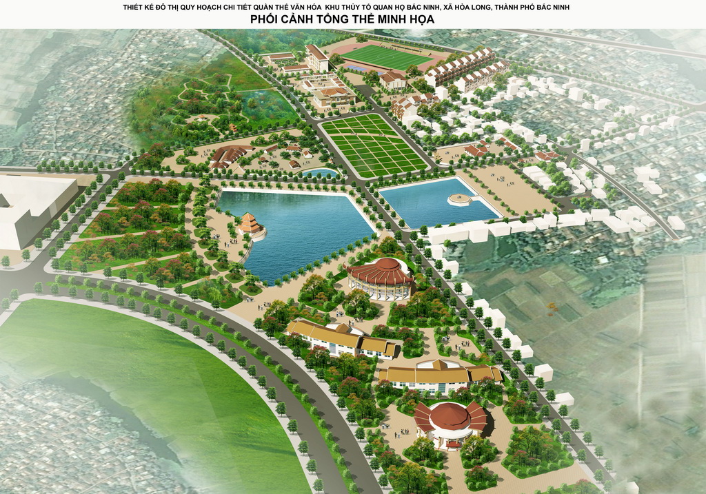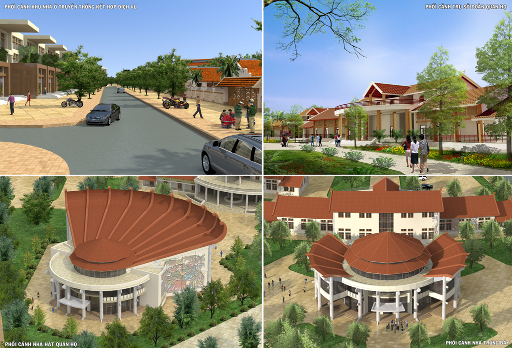 + Không gian phát huy giá trị văn hóa lịch sử nằm ở phía Bắc, phía Đông và phía Tây Nam: Không gian lễ hội Quan họ, khu đón tiếp và dịch vụ, trung tâm phát triển văn hóa quan họ (Nhà hát quan họ), nhà ở kết hợp thăm quan và hát sinh hoạt quan họ cổ, không gian cây xanh cảnh quan, khu dân cư hiện trạng, khu dân cư kết hợp dịch vụ.