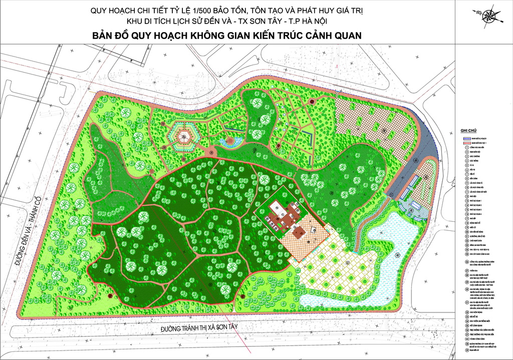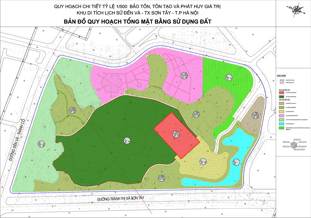 Khu di tích lịch sử được định hướng phân thành 5 không gian chính với tổng diện tích toàn khu là 23,42 ha: