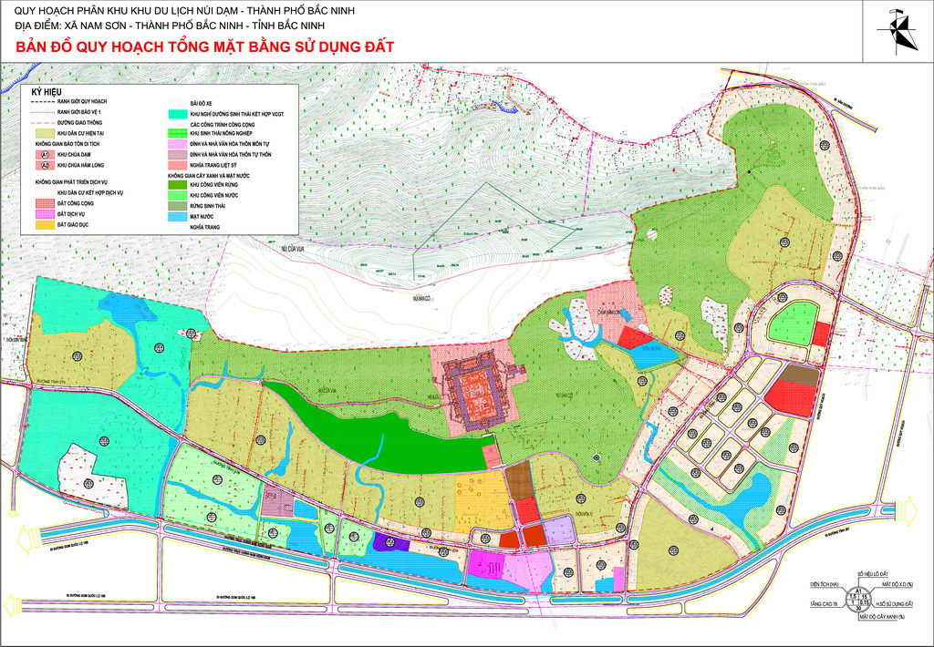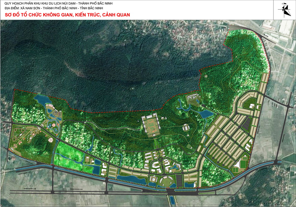Tổng thể không gian khu du lịch núi Dạm được bố trí các trục không gian cây xanh cảnh quan kết nối các không gian điểm nhấn, tạo một trung tâm văn hóa lịch sử, một trọng điểm du lịch văn hóa, tâm linh, sinh thái và nghỉ dưỡng của tỉnh Bắc Ninh