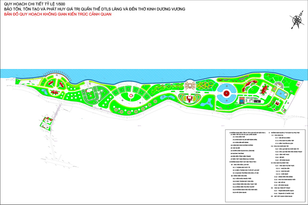 + Khu vực nằm giữa khu đất lập quy hoạch: Bao gồm các di tích gốc (Khu vực bảo tồn) và các khu chức năng từ Lăng Kinh Dương Vương đến hết hồ bán nguyệt của trung tâm văn hóa Kinh Bắc. Điểm nhấn nổi bật về cảnh quan là tượng đài thủy tổ và sân khấu trung tâm.