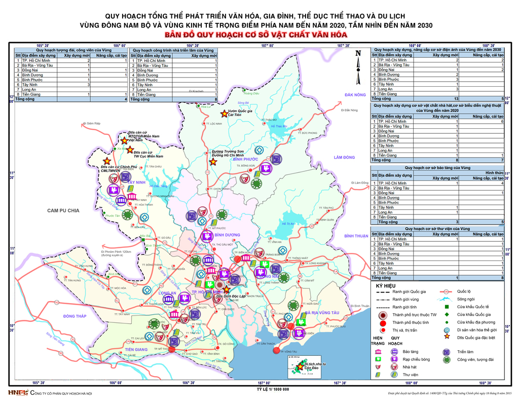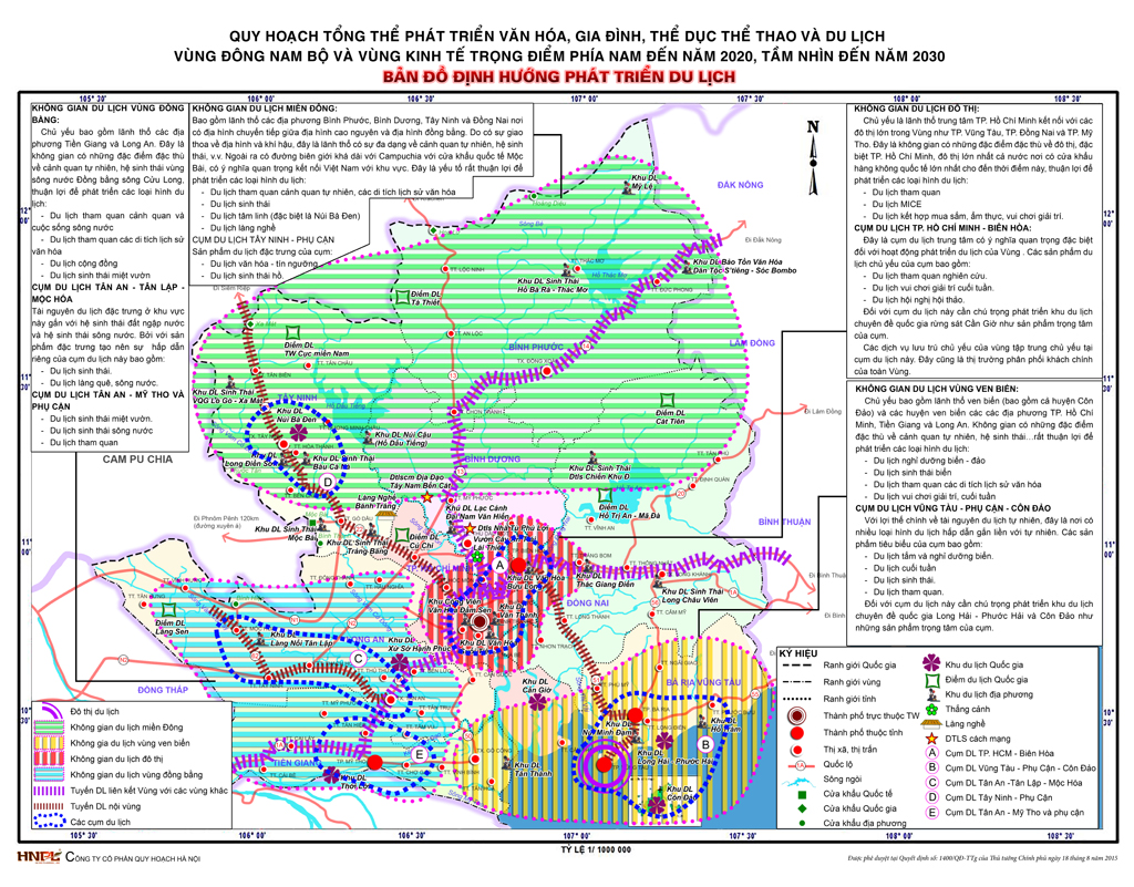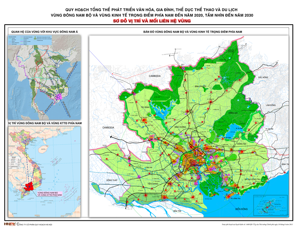 Quy hoạch tổng thể phát triển văn hóa, gia đình, thể dục thể thao và du lịch vùng KTTĐ vùng Đông Nam Bộ và vùng kinh tế trọng điểm phía Nam đến năm 2020, tầm nhìn đến năm 2030 được phê duyệt tại Quyết định số 1400/QĐ-TTg, ngày 18/8/2015 xác định phát triển văn hóa, thể dục thể thao Vùng toàn diện, hướng tới Chân - Thiện - Mỹ, thấm nhuần tinh thần dân tộc, nhân văn; xây dựng gia đình no ấm, tiến bộ, hạnh phúc; phát triển du lịch Vùng trở thành ngành kinh tế mũi nhọn, hiện đại và có sức cạnh tranh; xây dựng được các sản phẩm du lịch có chất lượng cao, có thương hiệu, mang đậm bản sắc văn hóa dân tộc. Phát triển Vùng trở thành một trung tâm dịch vụ văn hóa, nghệ thuật, thể dục thể thao và du lịch lớn của cả nước.