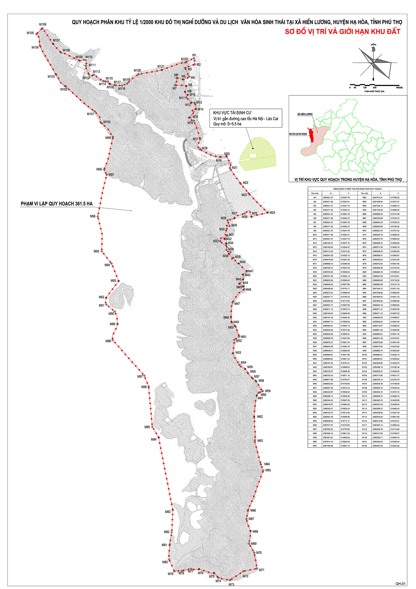 Quy hoạch phân khu tỷ lệ 1/2000 Khu đô thị nghỉ dưỡng và du lịch văn hóa sinh thái tại xã Hiền Lương, huyện Hạ Hòa, tỉnh Phú Thọ